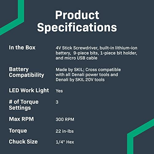Amazon Basics by SKIL 4V Cordless Stick Screwdriver with 10-Piece Bit Set and USB Cable(Previously Denali brand)