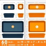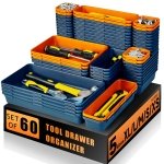 - [60 Pack & 5 Sizes] – Our tool box organizer bins include 60 trays:4 x XL size (12.5×6.2×1.77in), 8 x L size (9.25×6.2×1.77in), 12 x M size(9.25x3x1.77in), 10 x S size(6.2x3x1.77in), 26 x XS size(3x3x1.77in). PS: 40pcs in Blue, 20pcs in Orange.
