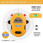 • Angle Dial & LED light: The angle dial is used for angle reference, easily change the angle you want within the range of 15°~75°; Angle dial & bubble vial designed with LED lights for easier reading in dark workspaces