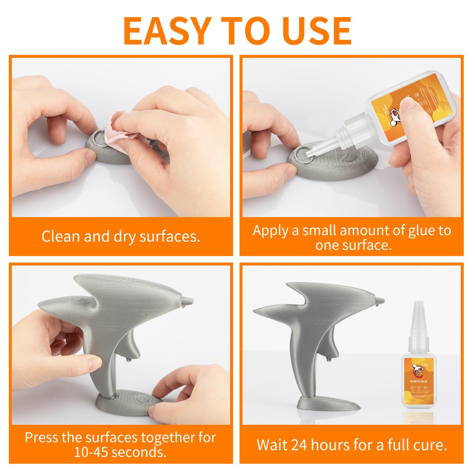 • Instant & High Strength: Our plastic glue deliver an instant and durable adhesion in 10-30 seconds, ensuring invisible, reliable and long-lasting repairs. Waterproof after 24 hours fully cure.