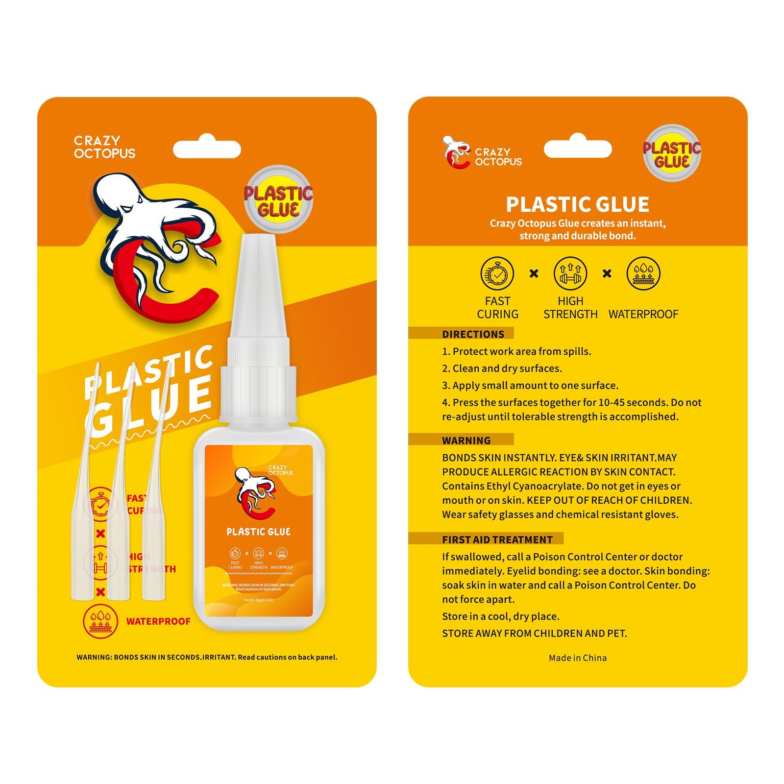 • Multi-purpose Repair: Crazy Octopus plastic super glue is ideal for repairing all types of plastic materials in your home, office, workshop. Perfect for repair plastic items such as toys, models, acrylic, eyeglass frames, car, 3d printing, DIY crafts etc.