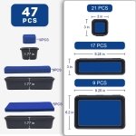 - [47 Pack in 3 Sizes] – Our Tool organizer contains 47 trays: 9 x Large size (9.25 x6.2 x1.77 in), 17 x Medium size (9.25 x3 x1.77 in), 21 x Small size(3 x3 x1.77 in). PS: Extra 24pcs of EVA Pads: 5 x Large size, 9 x Medium size, 10 x Small size.