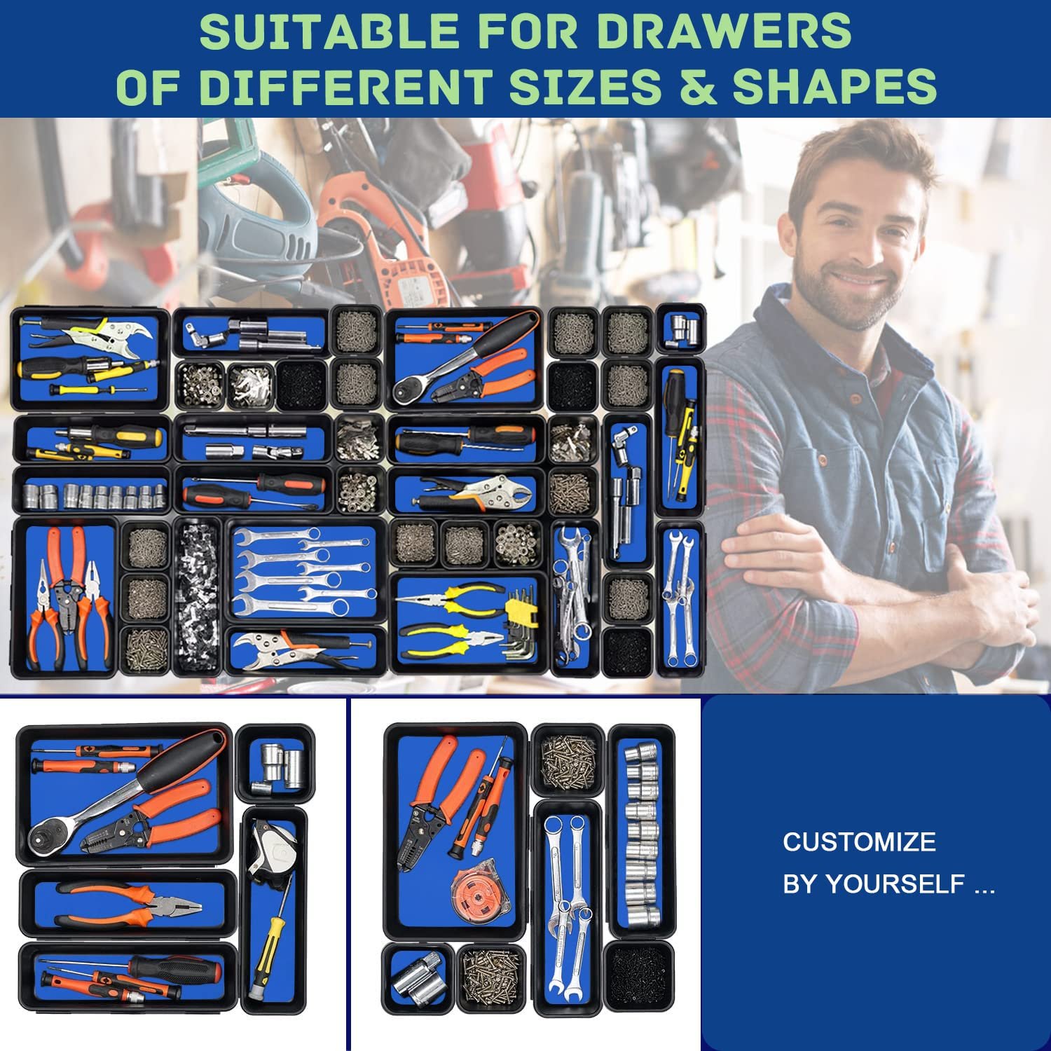 - [Wide Use] – The toolbox chest organization are perfect for organizing your tool box, tool cabinet, rolling tool chest, workbenches and so on. Trays of different sizes can fit almost all drawers and chests of various shapes.